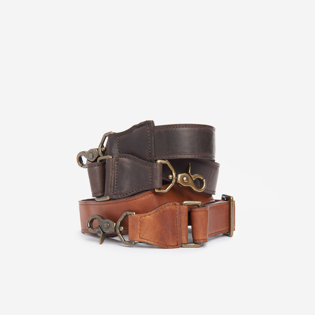 Handcrafted with full-grain leather and accented with solid brass, our replacement straps attach easily to select ONA messenger bags.